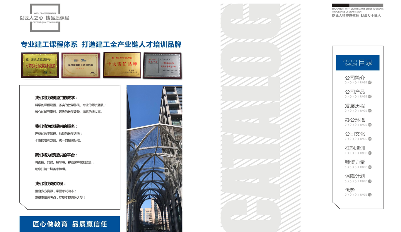 公司将始终立足于工程教育,坚持“匠人”精神服务于社会,充分发挥人才、资源、服务等方面的优势,为广大学员提供专业信息、特色教育等全方位的优质服务。为建筑行业、各领域的管理及技术人员拓展思维模式、吸收先进管理理念及方法、构筑全面的知识平台、培养持证上岗专业技术人才提供强大的技术及服务支撑。
